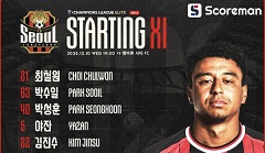 "굿바이 린가드" FC서울, 린가드 고별전 멜버른전 선발 명단 공개…린가드-천성훈 투톱 출전AFC 챔피언스리그 FC 서울 멜버른 시티 FC 서울 VS 멜버른 시티 -